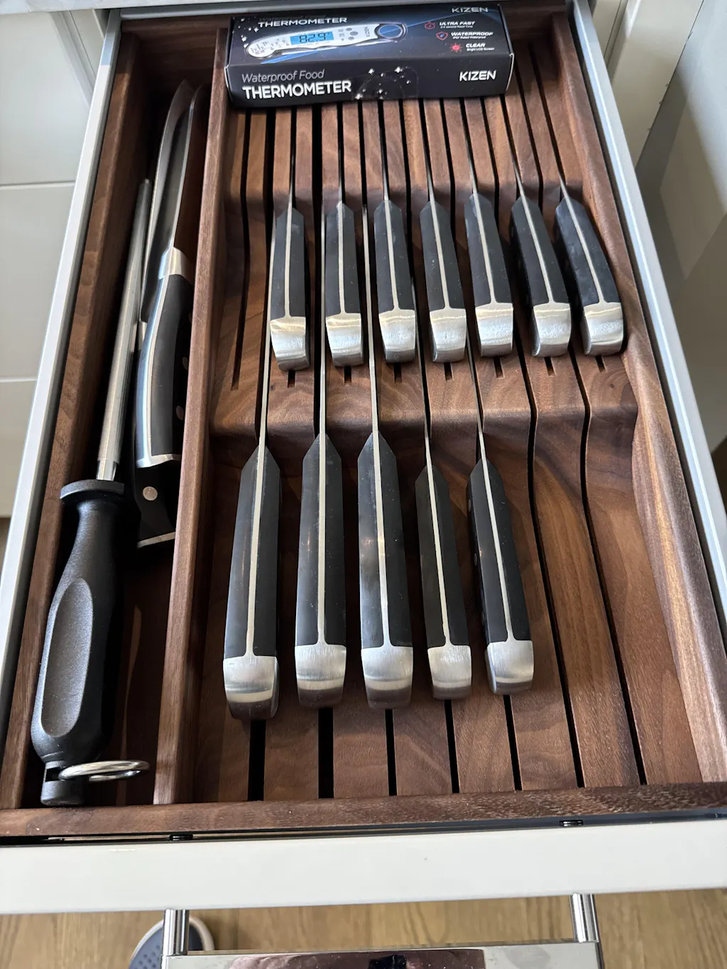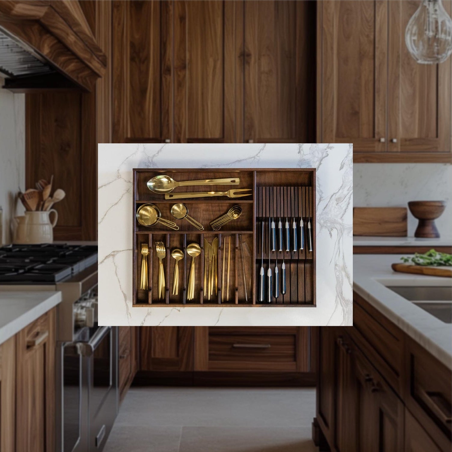 I know it was made to fit, but I was still shocked how perfectly the organizer fits in the drawer. It's such beautiful wood and I find myself making excuses to open it and look inside. I'm considering getting them for all the drawers in my kitchen now, they're that excellent.